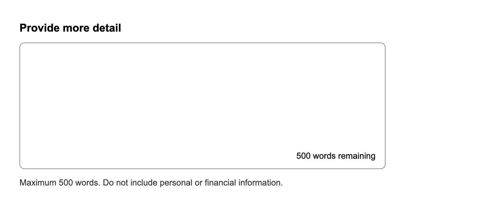 Provide context and guidance before a long-answer text field to help users provide relevant information.