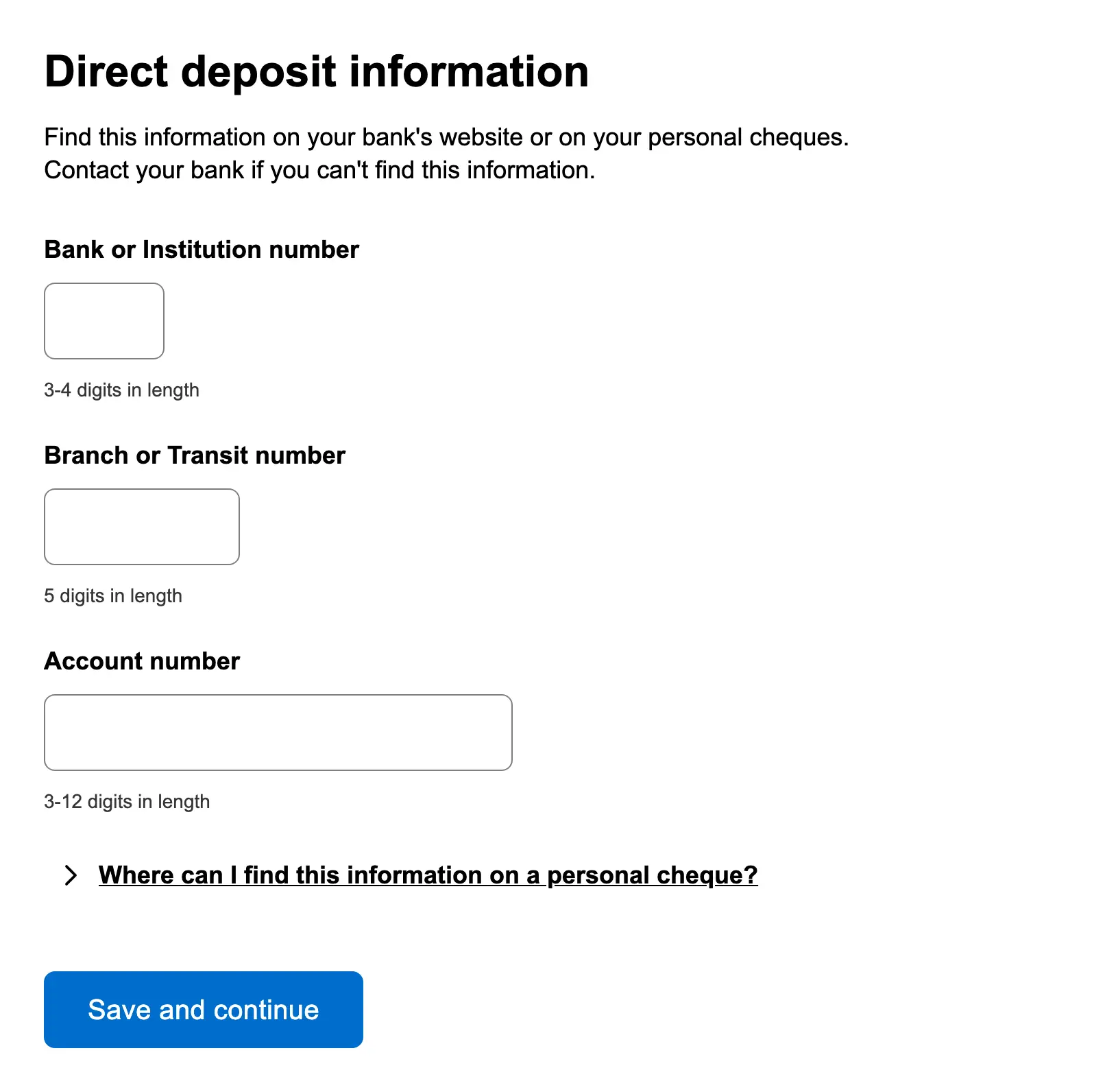 Gather banking details from users to enable direct deposit, including account number and financial institution informati...