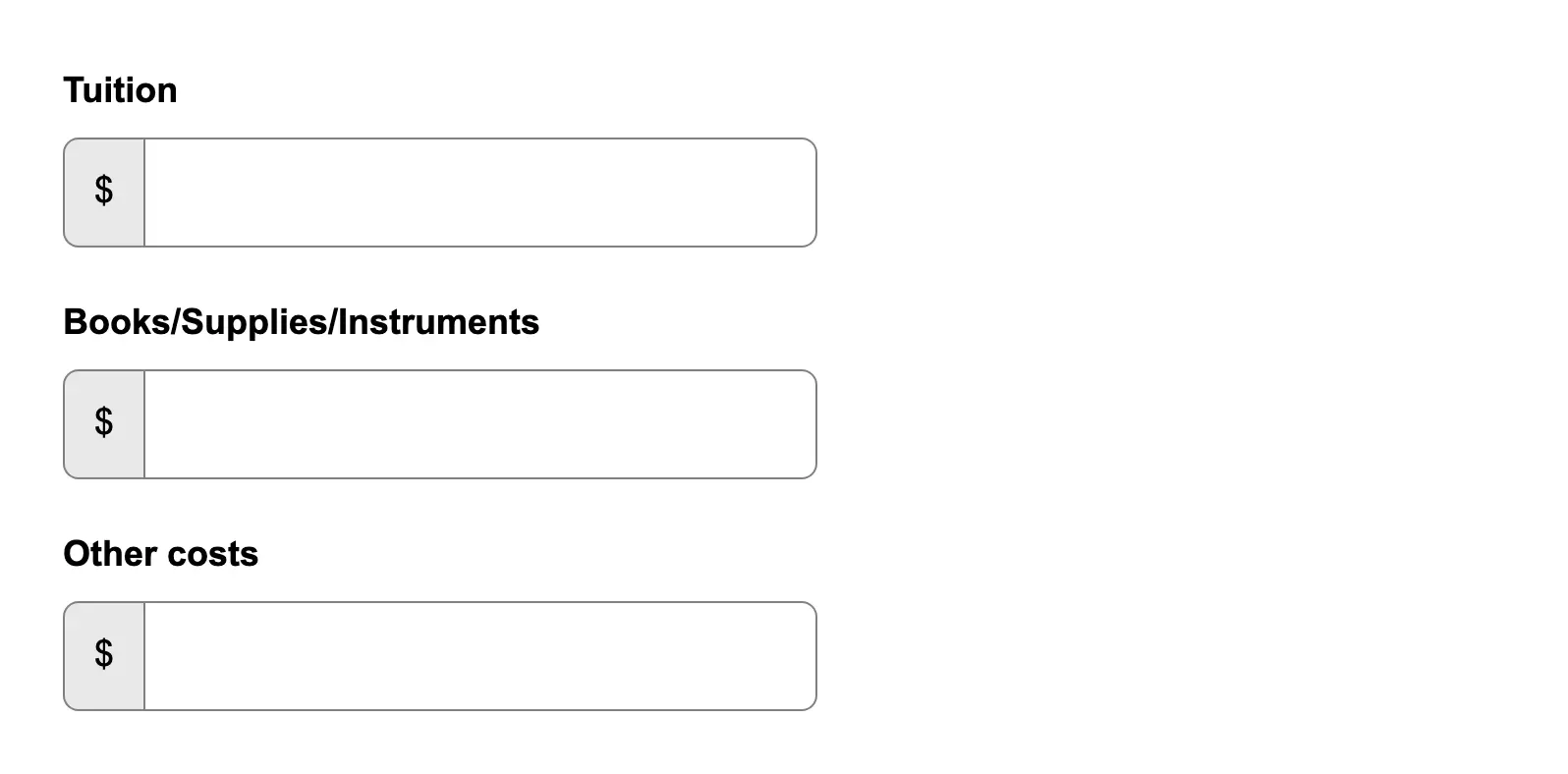 Prompt users to enter monetary values using a consistent input format that supports validation and currency symbols.