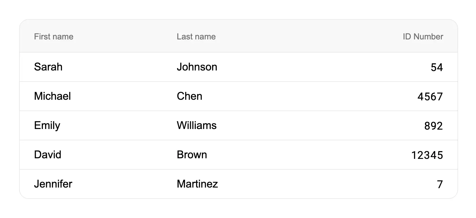 Right-align numeric columns in tables to make them easier to scan and compare.