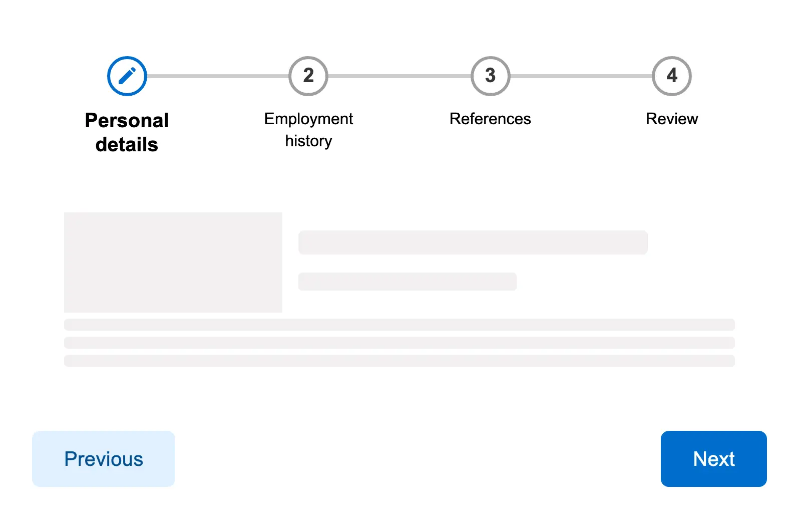 Create a multi-step form with controlled navigation using Previous/Next buttons.