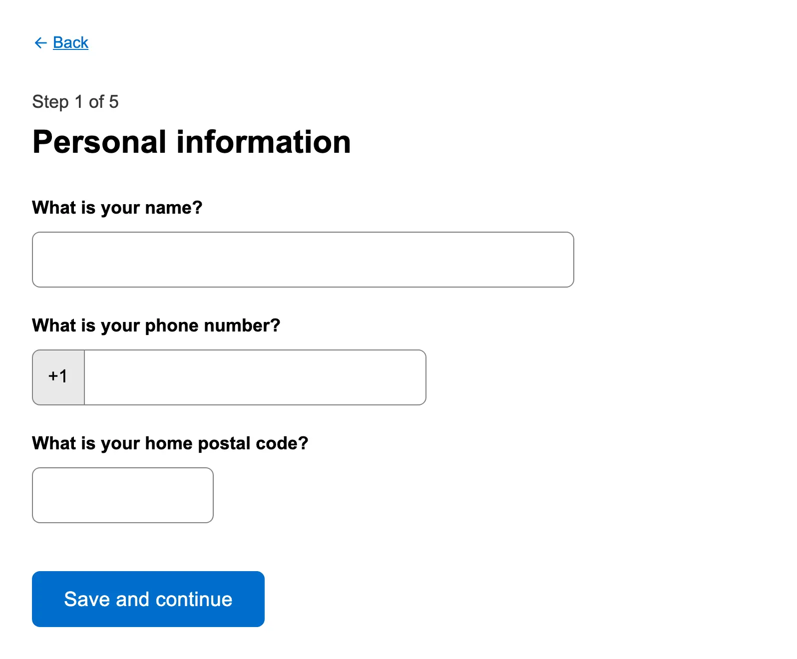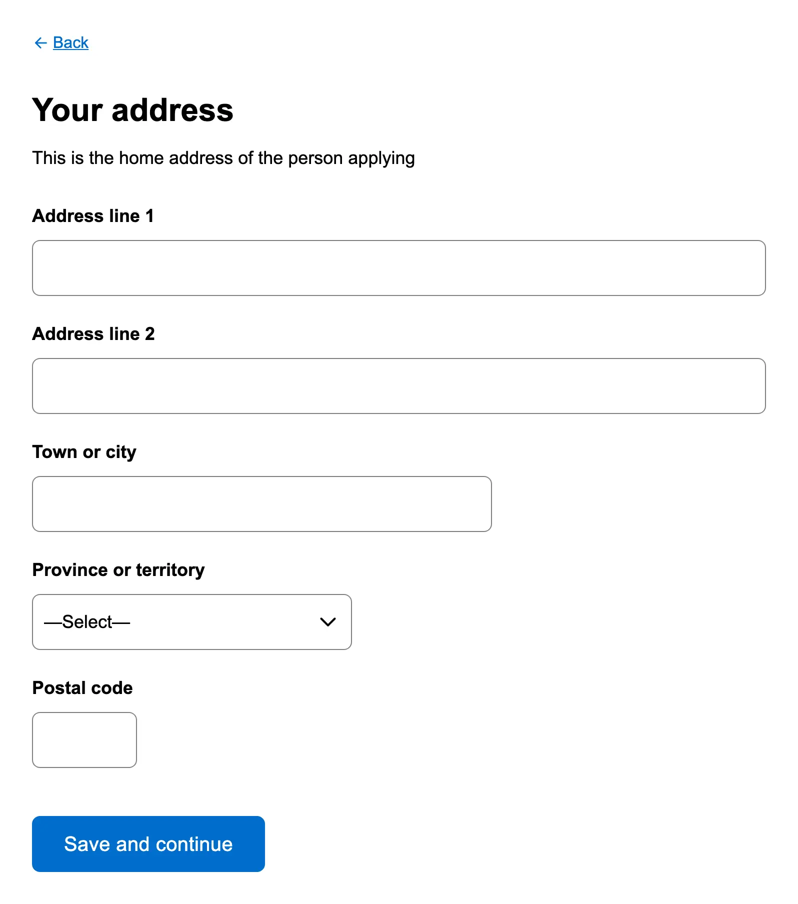 Group related form fields together on a single page to collect address information from users, making it easier to compl...