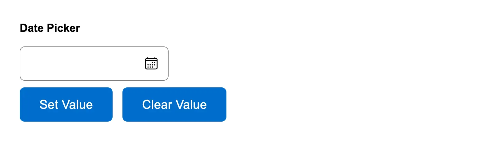 Allow users to programmatically set or clear a date picker field value, useful for reset functionality or setting defaul...