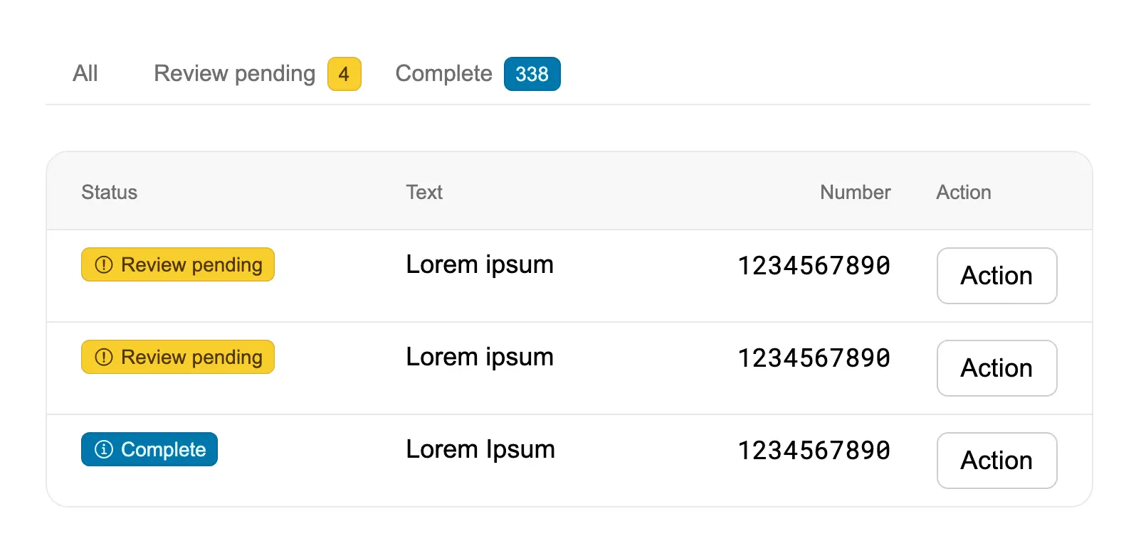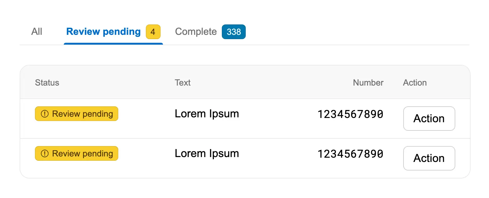 Use tabs to organize table data into different views based on status or category, showing counts in each tab to help wor...