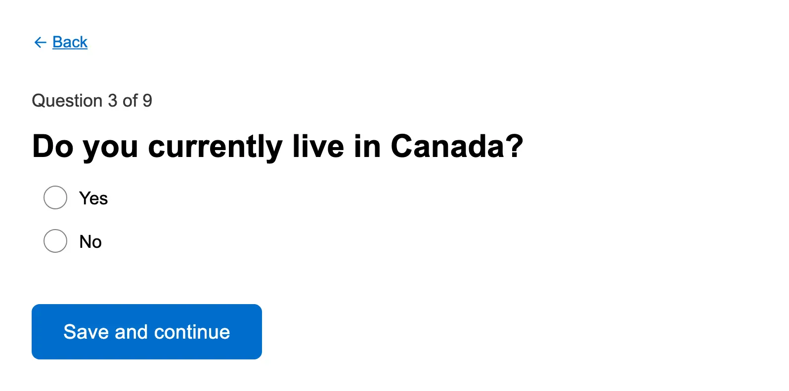 Show a simple progress indicator on a question page to help users understand their progress through the form.