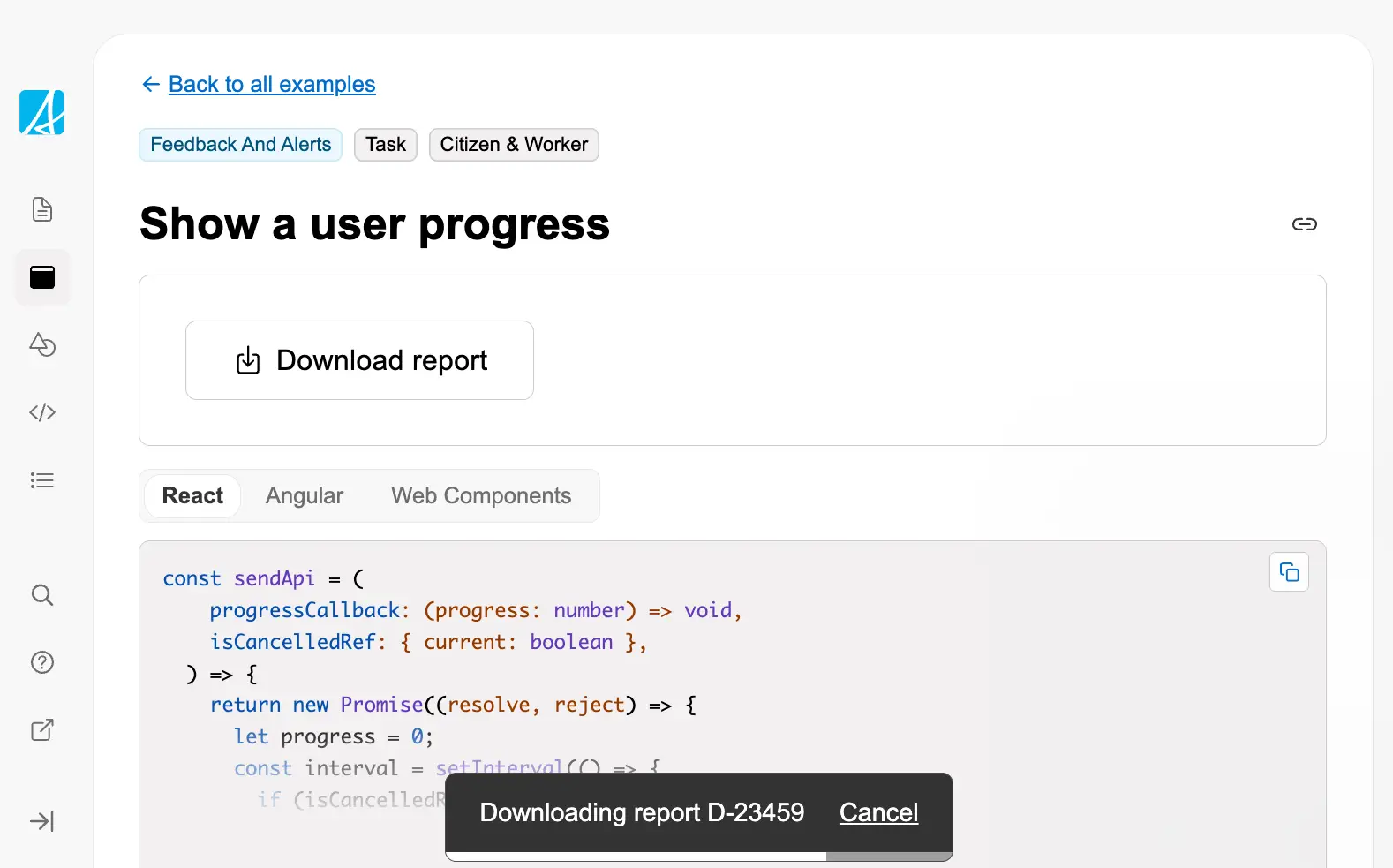 Display progress feedback during long-running operations like downloads, showing percentage completion with the ability ...