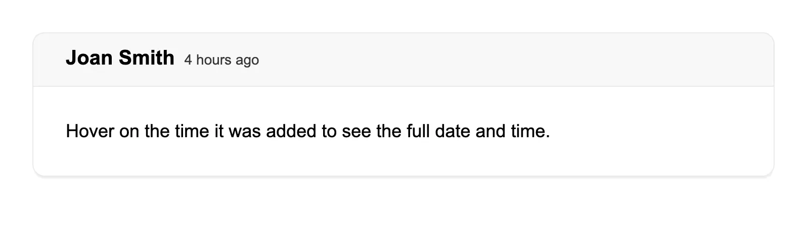 Display relative time (like "4 hours ago") while providing the full date and time on hover via tooltip for users who nee...