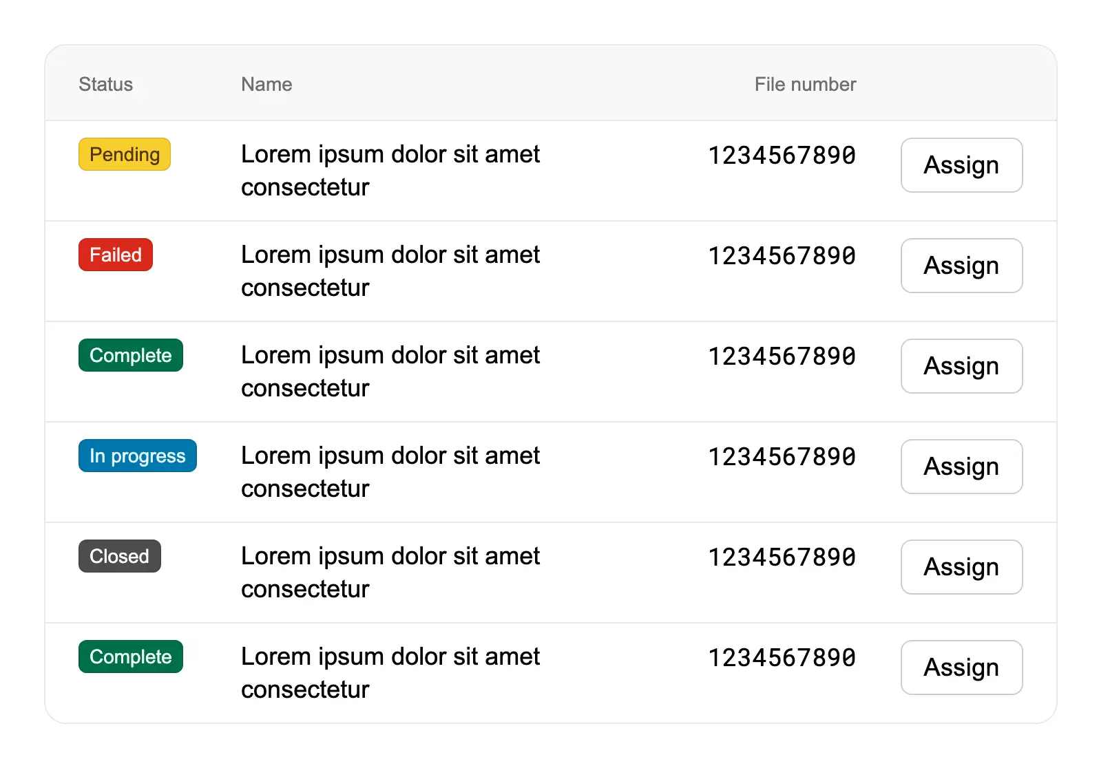 Display status information within table rows using badges to provide clear visual indicators of item states like pending...