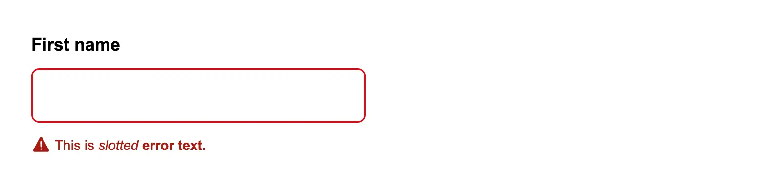 Use the error slot in a form item to display formatted error messages with custom styling like bold or italic text.