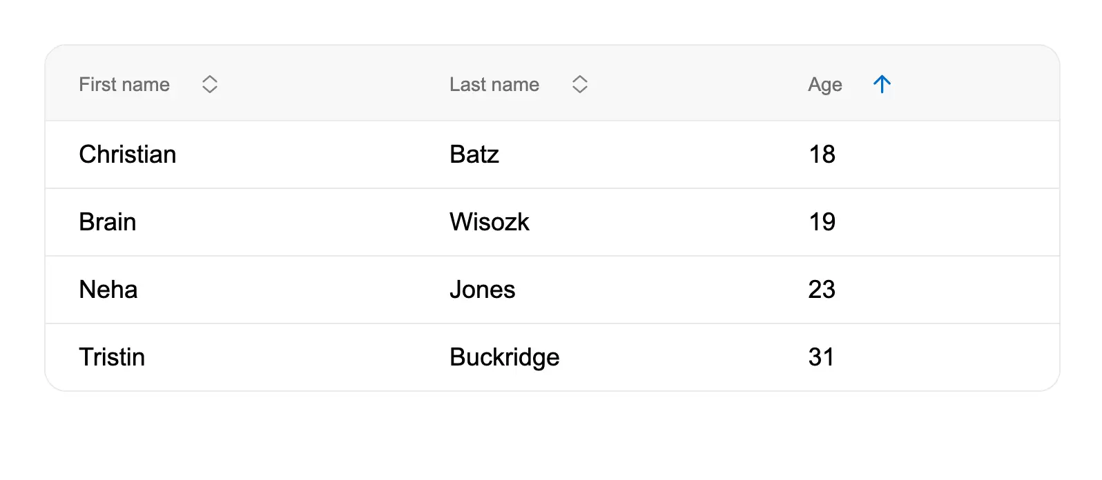 Enable column sorting in tables using sort headers, allowing workers to organize data by clicking column headers to togg...