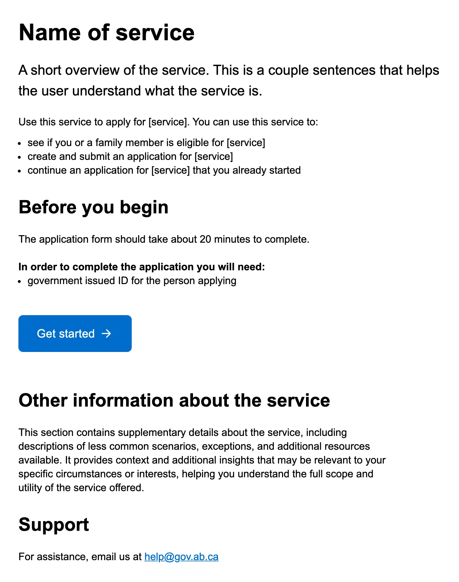 A start page is the front door to a government service for citizens. It provides essential information about the service...